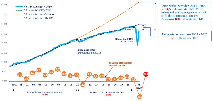 ثانياً: على عكس الدين الداخلي الذي هو un jeu à somme nulle على مُستوى البلاد، الدين الخارجي هو تحويل ثروة أُنتِجت في تونس للخارج. يعني إذا كان الدين الخارجي لم يُستعمل لخلق الثّروة يُصبح تسديده بمثابة الخسارة "الجافةّ" أو خسارة فادحة (perte sèche) للبلاد.