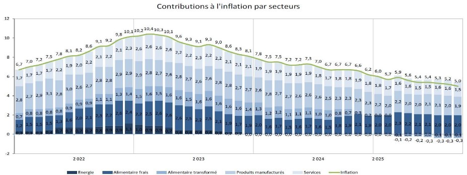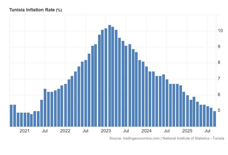Le taux d'inflation de 5 % enregistré en Tunisie en septembre pour l'indice des prix à la consommation (IPC) reste trop élevé. De plus, l'inflation cumulée sur les neuf derniers mois s'élève à 5,5 %. (Voir ci-dessous).