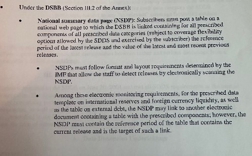 Même si les autorités tunisiennes ont décidé de geler leurs relations avec le FMI, la Tunisie demeure liée par les engagements qu’elle a pris envers cette institution. En effet, la Tunisie est signataire du Special Data Dissemination Standard (SDDS) du FMI, qui impose plusieurs obligations en matière de diffusion régulière, fiable et ouverte des informations économiques et financières.