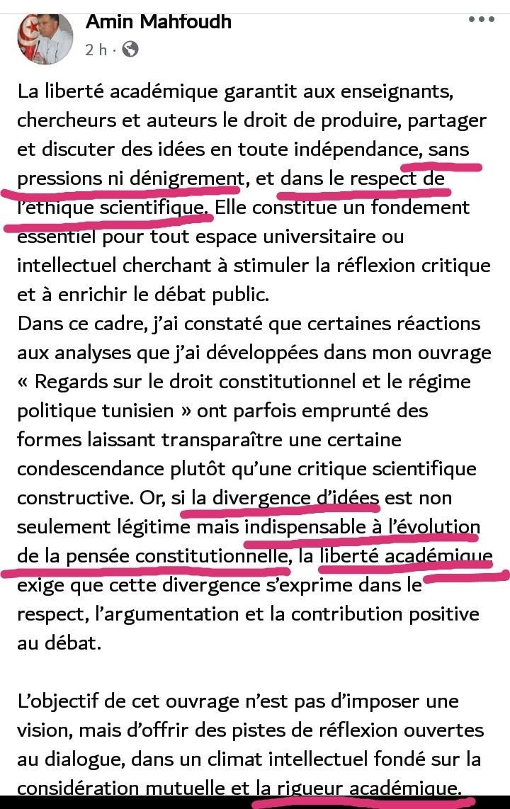 بعد الفضيحة الأكاديمية والسقطة الأخلاقية التي تورّط فيها، بآعتماد فيديو مفبرك يقلب كلّيّا معنى الكلام الذي صرّح به المقرر العام للدستور الحبيب خضر، كتب أمين محفوظ اليوم تدوينة في الموضوع.