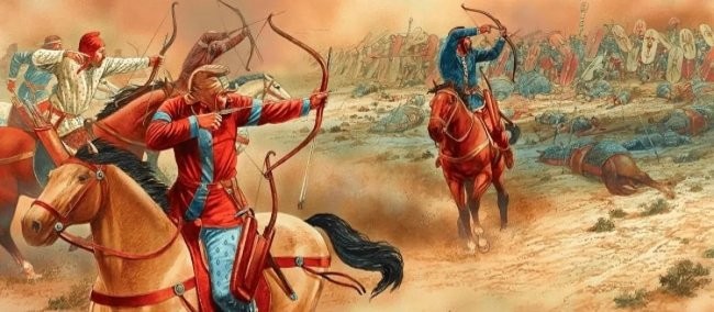Nous estimons que les vidéos de ces charges que nous avons reçues via les réseaux sociaux relèvent des fake news. Il n’y a pas de vérification indépendante ; prenons garde de ne pas croire autre chose que ce que nous supposons savoir. Il est impossible que quelques centaines de cavaliers aient tendu une embuscade à des milliers de Romains. De plus, ils font semblant de fuir, et pendant cette chevauchée, soit ils montent à l’envers, soit ils parviennent à se retourner et à lancer avec précision les projectiles qui tuent nos troupes, leur clouant les mains au bouclier ou les pieds au sol. C’est la flèche du parthien. Mais il semble qu’un millier de catafractaires attendaient Publius Crassus ; selon le mot grec, cela signifie des soldats et des chevaux recouverts d’une armure à plaques souples. Cette petite cavalerie lourde fit preuve d’une cruauté particulière en coupant la tête de Publius et en la montrant aux légionnaires romains. Nos sources indiquent que Crassus l’a également vue, et ce fut alors le début de la fin.